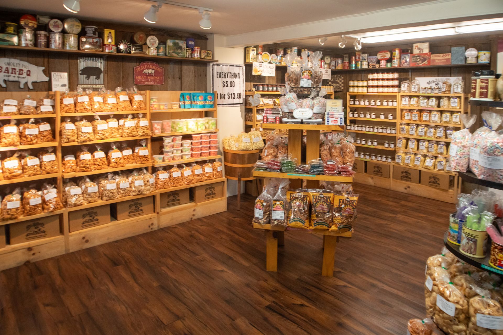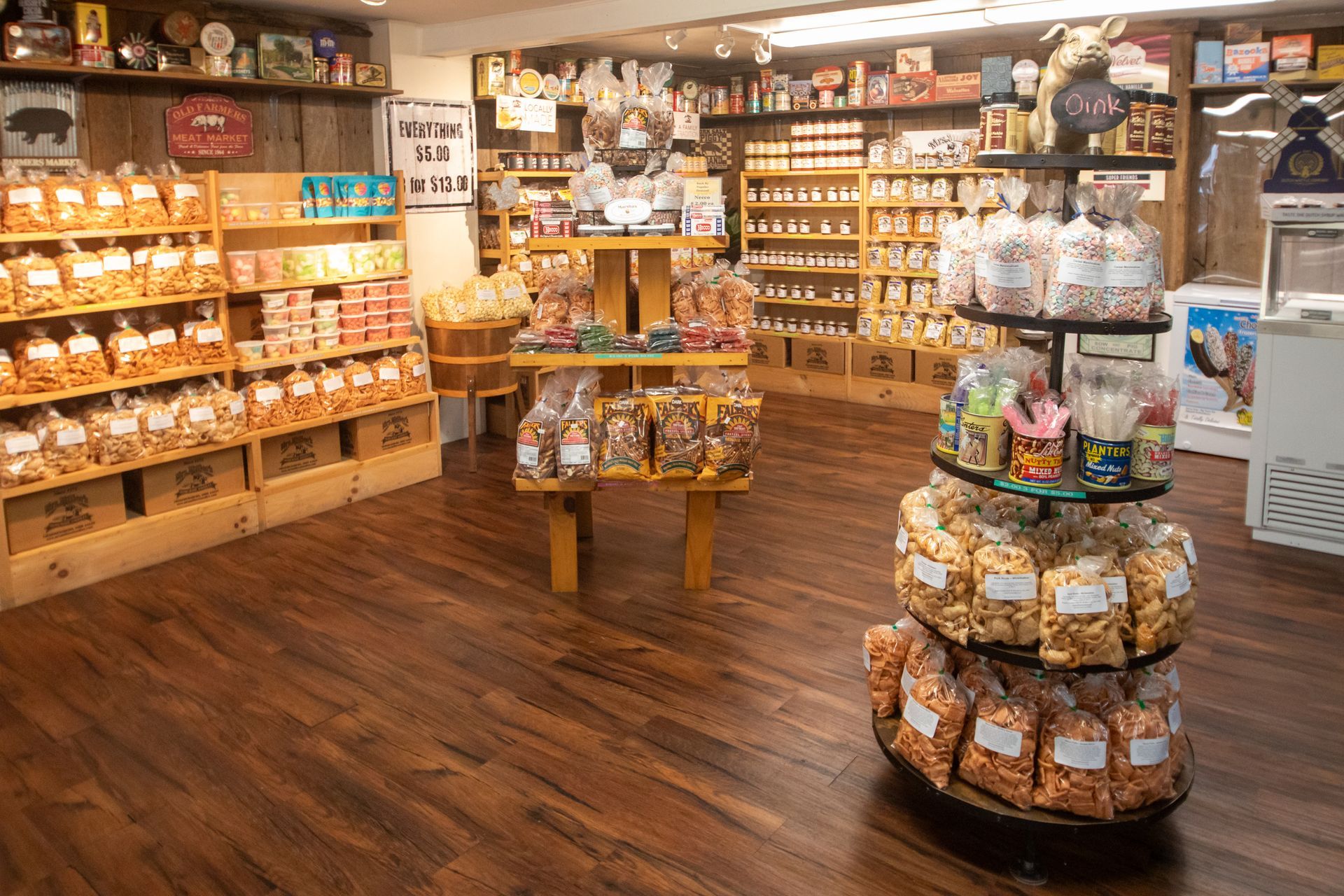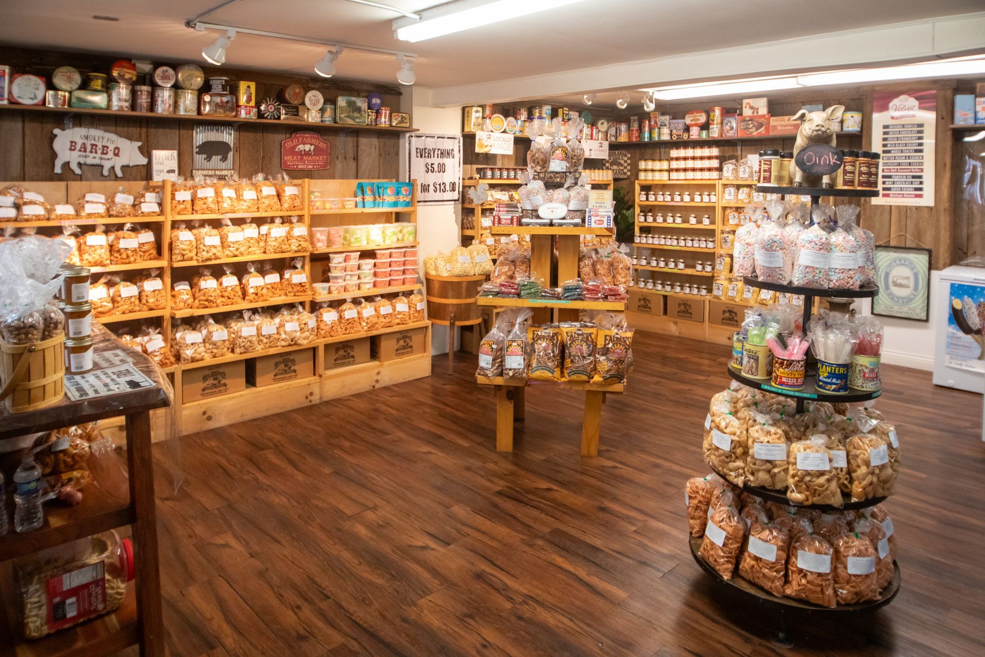 Buy our homemade pork rinds, cracklins, bacon puffs and cinnamon glazed nuts. We carry local jams, jellies, and noodles. Also, we have 16 flavors of Velvet Ice Cream, homemade waffle cones and other local goodies.