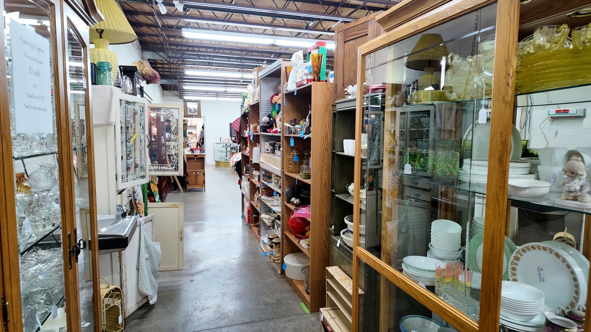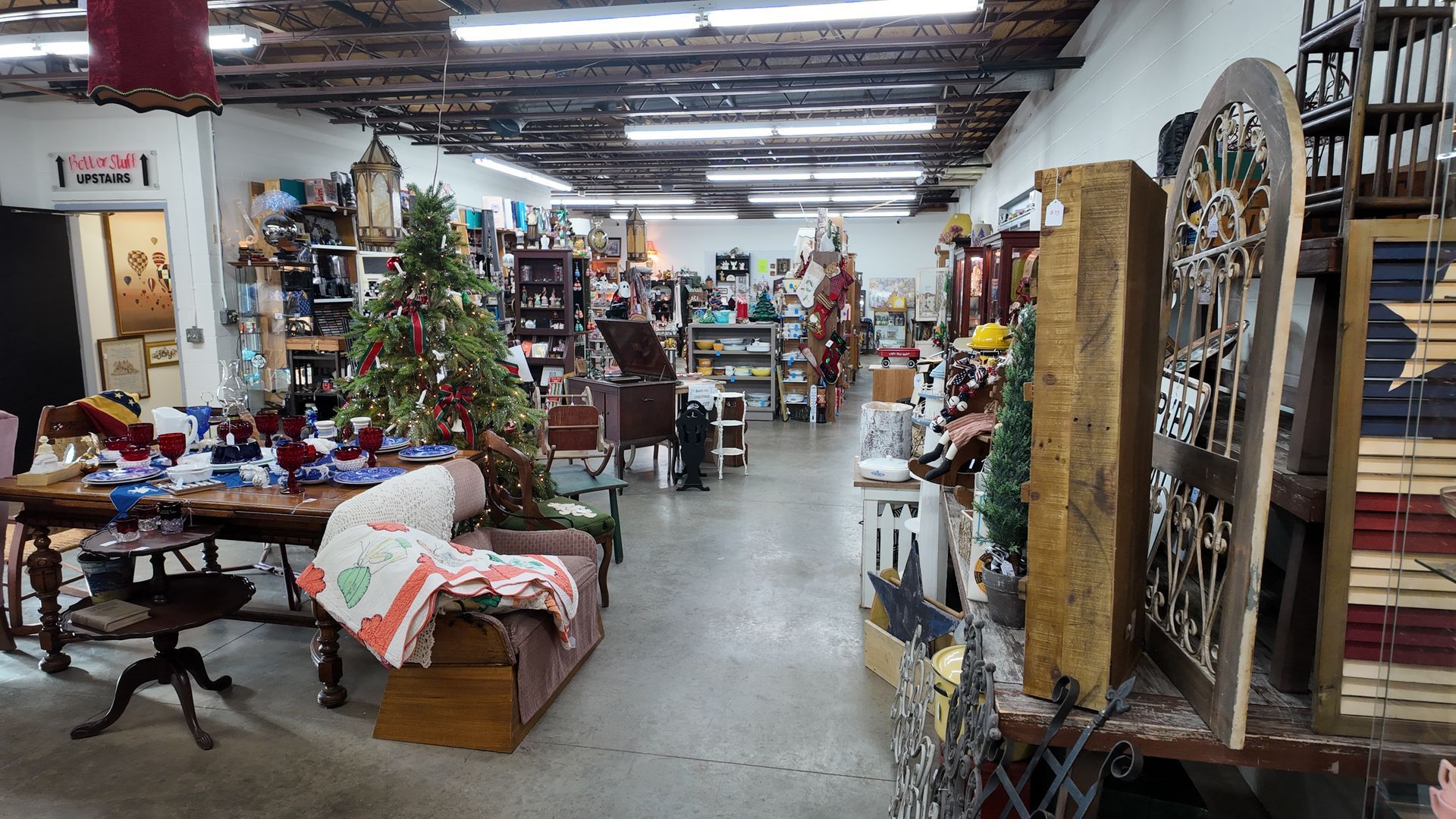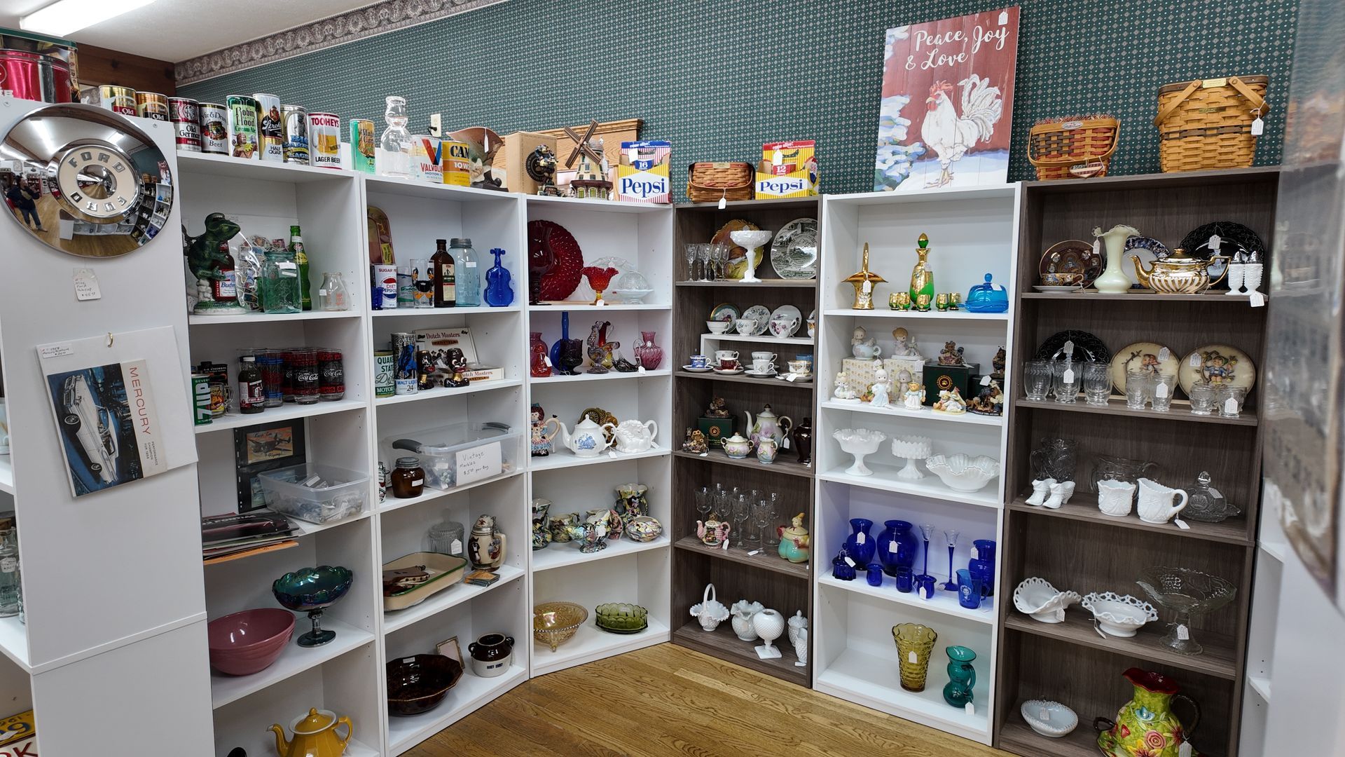 We have two floors featuring an exciting variety of over 40 vendors and their eclectic mix of goods. From vinyl records to glassware to furniture and vintage Christmas there is an ever-changing mix of collectibles and decor. Ample parking is available alongside and at the rear entrance of the building off of Oak Street.