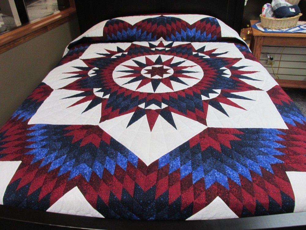 Each year, Berlin Main Street Merchants holds a spectacular Quilt Raffle. This year we present the stunning Mariners Star quilt, in red, white and blue, generously donated by Helping Hands Quilt Shop in Berlin.